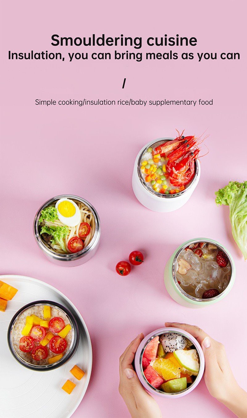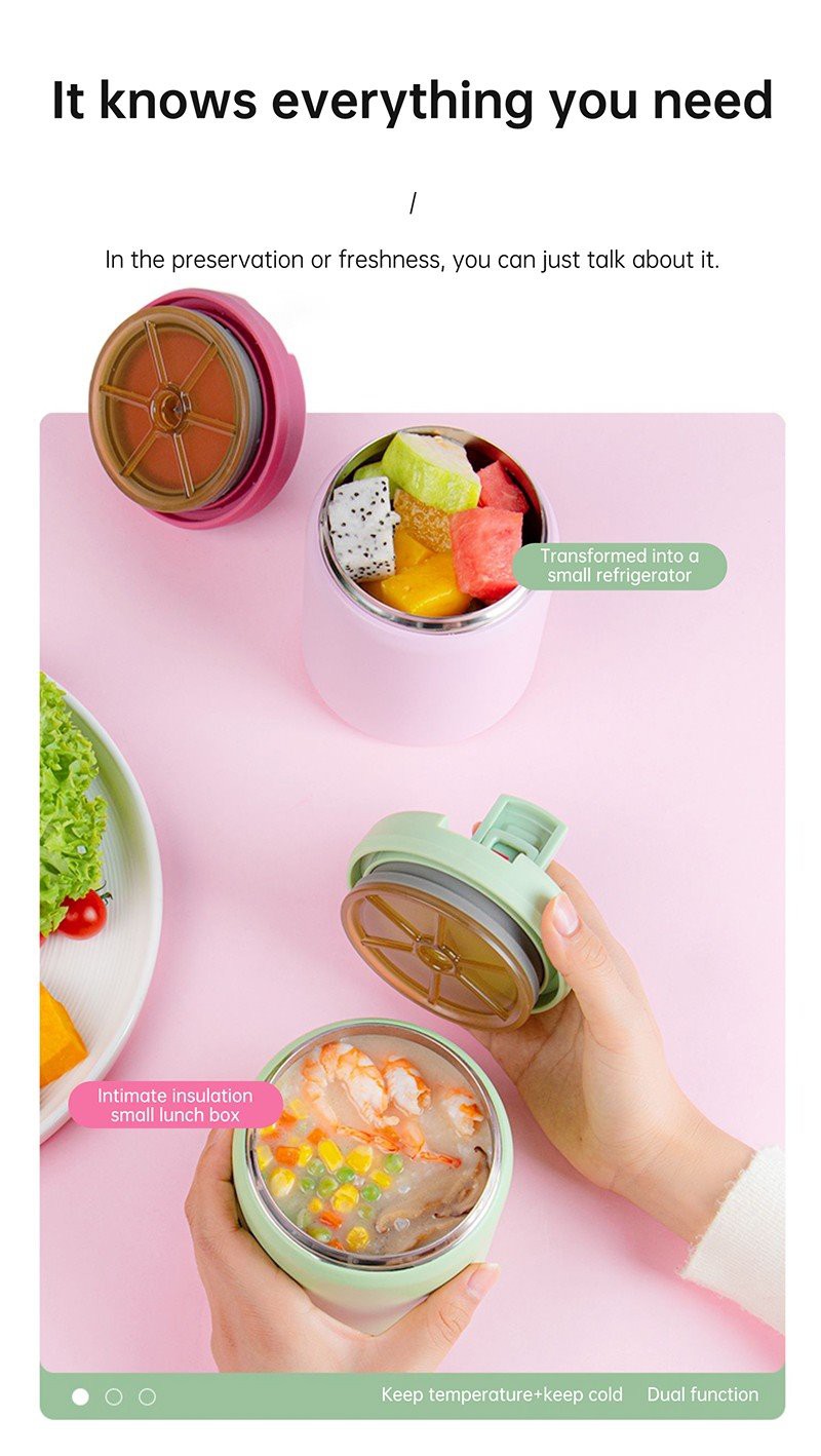 1.It’s thread-less. Allows the insulated lunch box to be opened and closed in 3 seconds by slightly sliding the button.